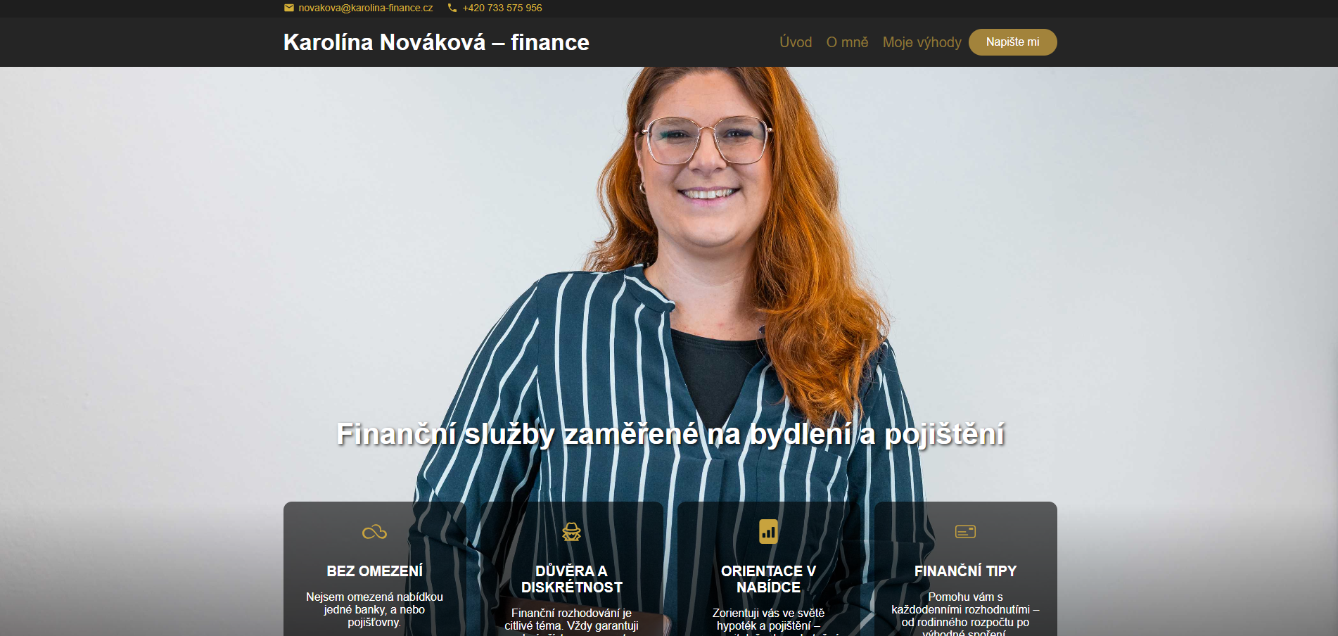 Webové stránky pro finanční poradenství s možností kontaktovat poradce a zjistit informace o službách.